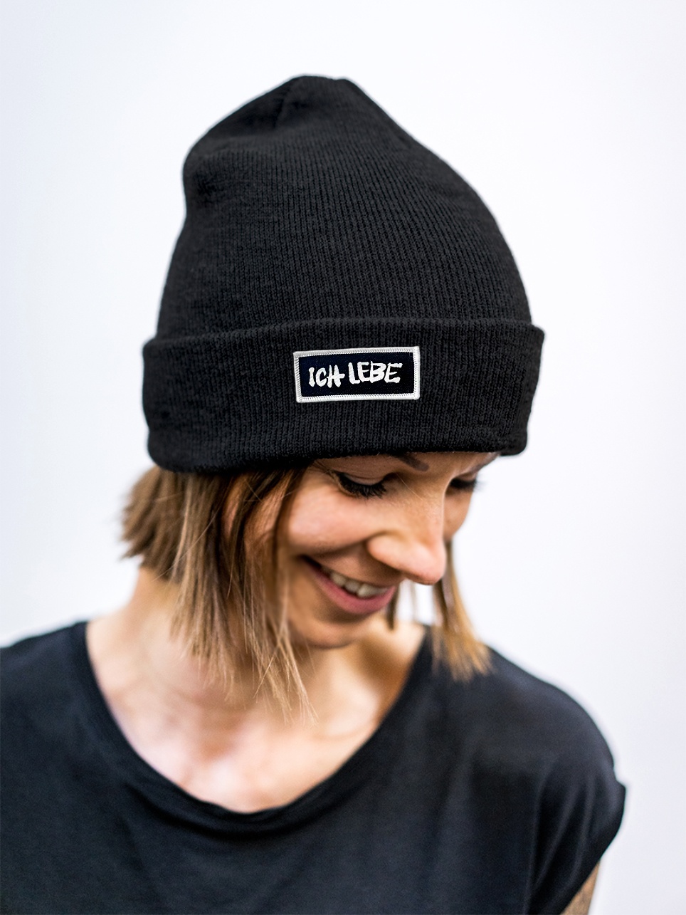 Beanie mit aufgenähtem Webpatch "Ich Lebe"