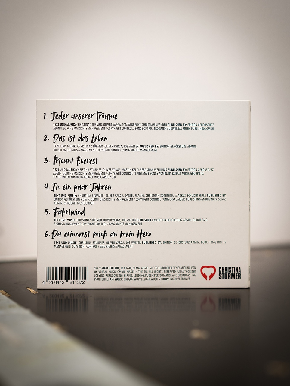 Christina Stürmer / Lebe Lauter Handsigniert! 01. Nie Genug 02. Lebe Lauter 03. Die Welt 04. Ohne Dich 05. Revolution 06. Augenblick am Tag07. Seite Eins 08. Scherbenmeer09. Unsere besten Tage 10. An Sommertagen 11. Sonne hinter dem Nebel 12. Um bei Dir zu sein 13. Reine Nebensache 14. Mitten unterm Jahr