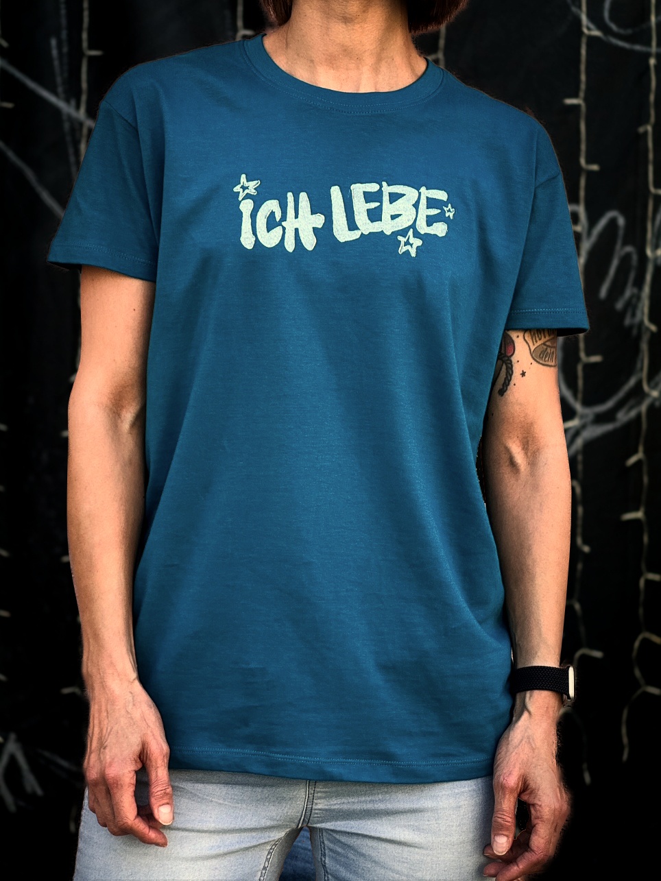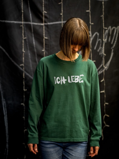 Unisex Long Sleeve T-Shirt Beidseitig bedruckt Brust "Ich Lebe" / Nacken "Christina Stürmer" Schnitt: Oversize / Langarm - Das TShirt besteht aus 100% Baumwolle Unter fairen Arbeitsbedingungen hergestellt. - Abbildungen ähnlich!